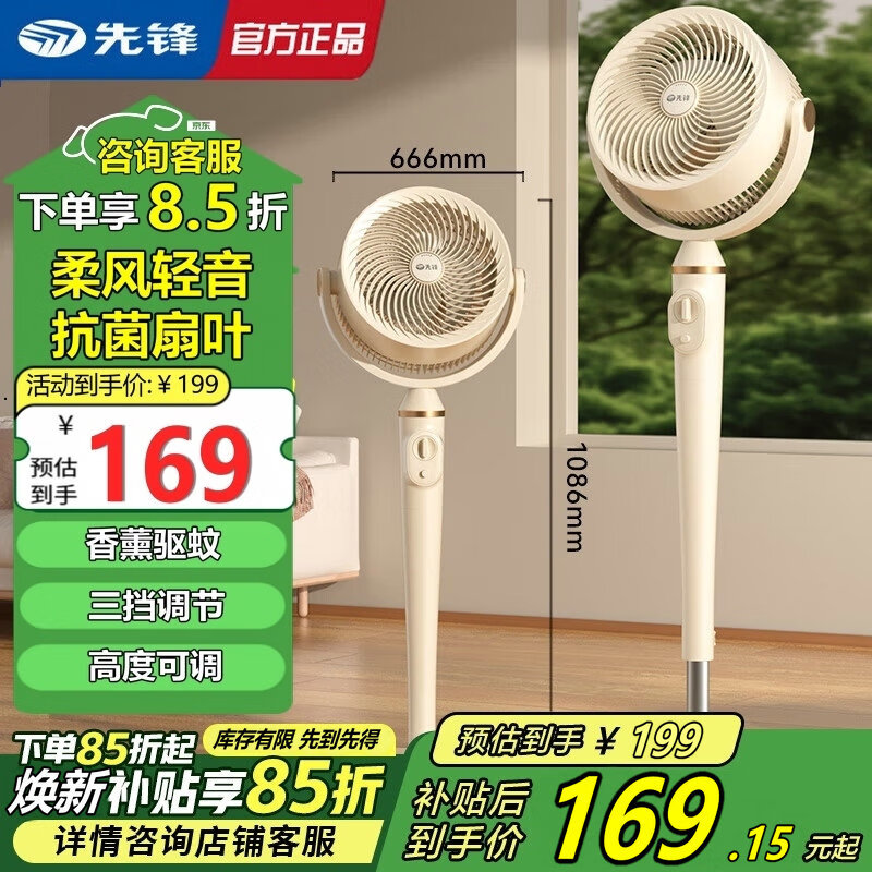 先锋(SINGFUN)先锋空气循环扇智能语音立式落地扇家用卧室大风力2025新款电风扇 台立机械款加重底盘3档