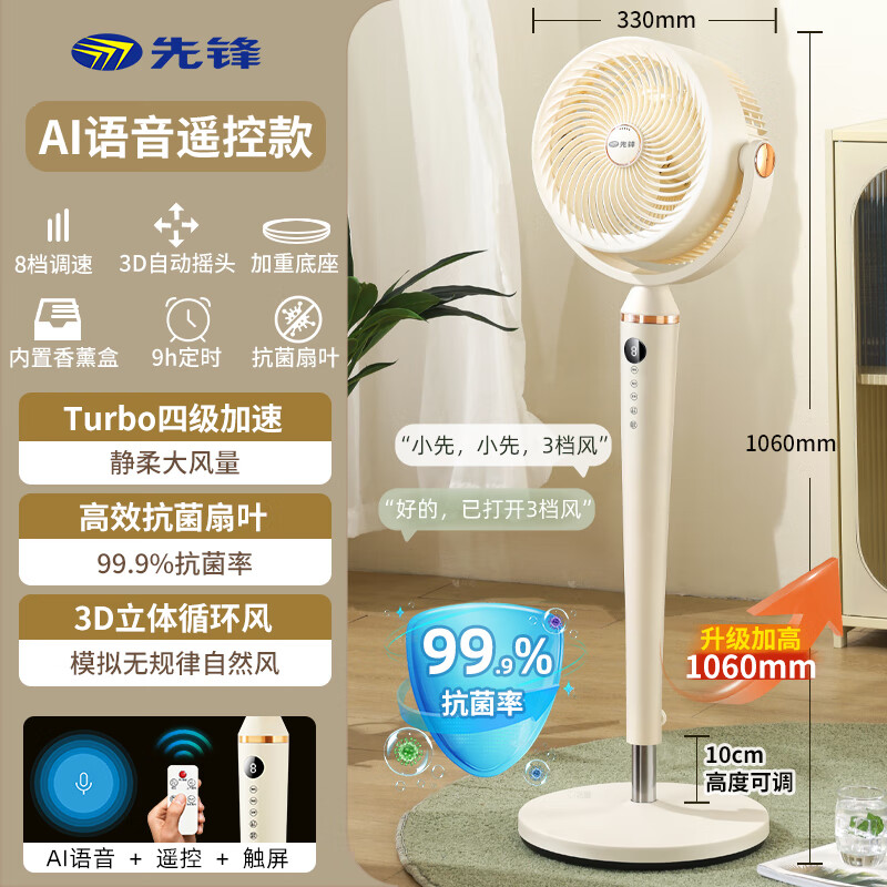 先锋空气循环扇智能语音电风扇家用桌面超音静台立两用新款落地扇 语音遥控款款-立体循环送风+升级加高机身