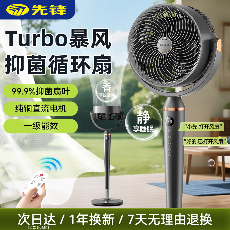 先锋直流变频轻音空气循环扇落地扇2025新款电风扇遥控语音静家用智能电扇 【钛空灰】直流变频-抗菌扇叶-32档风速调节