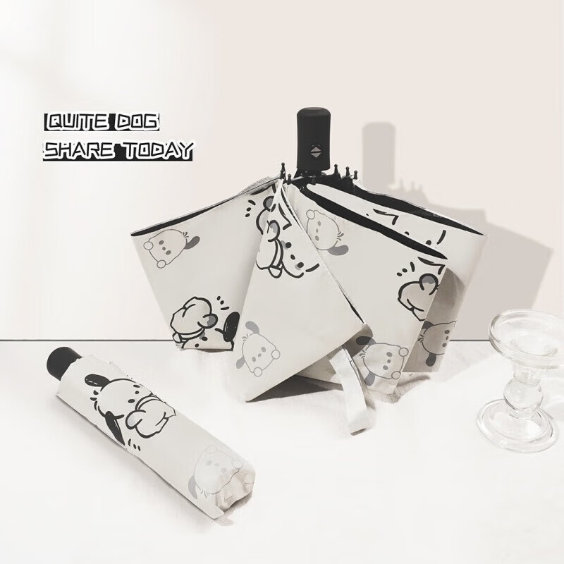山头林村雨伞卡通小狗全自动晴雨伞学生女生方便便携折叠防晒遮阳伞 手动幸运小狗-灰白色