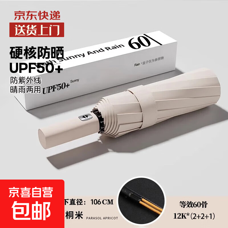 巨晶雨伞加大全自动雨伞男女学生折叠收缩大号加固加厚结实抗风防晒 手动雨伞 【米白色】晴雨两用 只换不修 晴雨伞