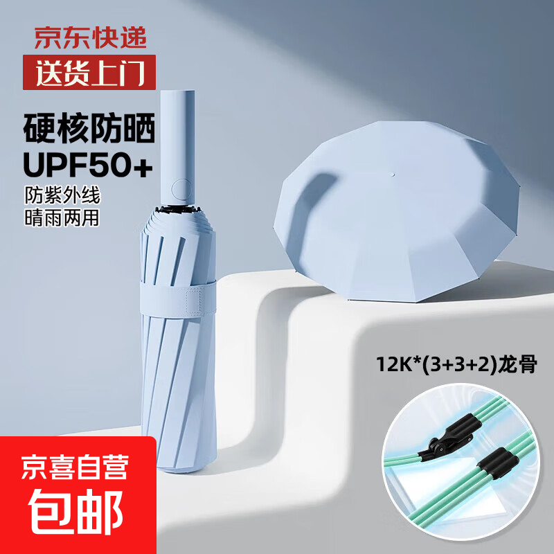 108骨雨伞自动男女折叠加大太阳伞晴雨两用伞防晒防紫外线遮阳伞 全自动【60根双龙骨晴雨伞】天蓝