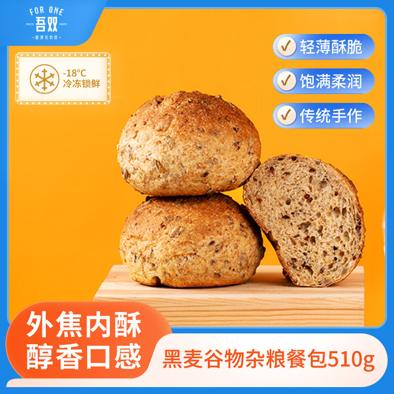 吾双面包法式黑全麦谷物杂粮餐包510g 早餐速轻食半成品全麦汉堡面包胚