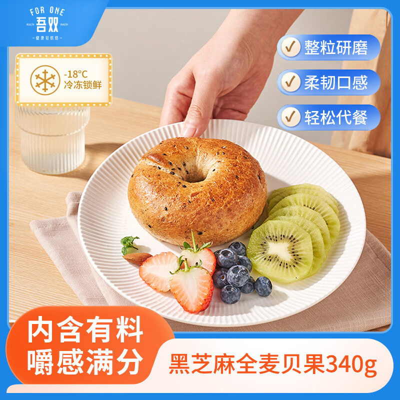 吾双面包黑芝麻全麦谷物杂粮贝果340g 欧包无蔗糖代早餐饱腹食粗粮面包胚