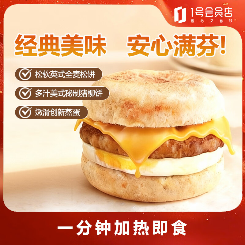 趣尝鲜猪柳蛋芝士麦芬888g(6个)冷冻面包懒人早餐全麦三明治汉堡包