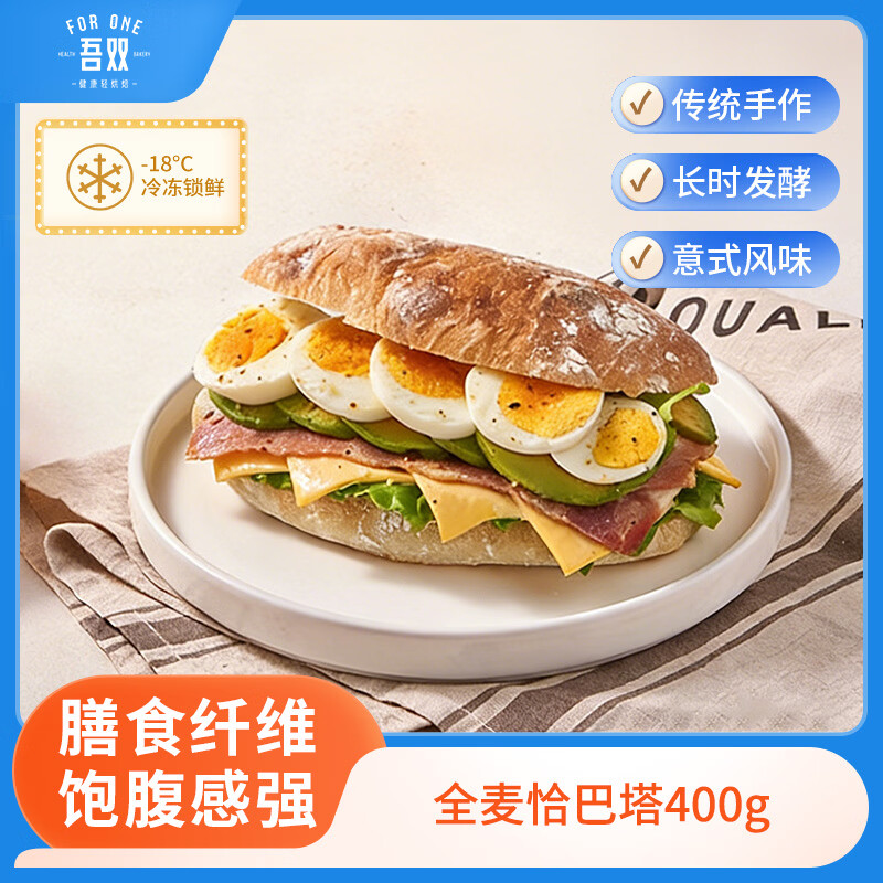 吾双面包【49元任选2件】恰巴塔帕尼尼欧包全麦面包 【49任选2】全麦恰巴塔400g【4个装】
