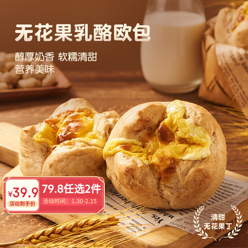 趣尝鲜无花果奶酪欧包 540克(6个) 冷冻面包懒人早餐全麦吐司三明治欧包