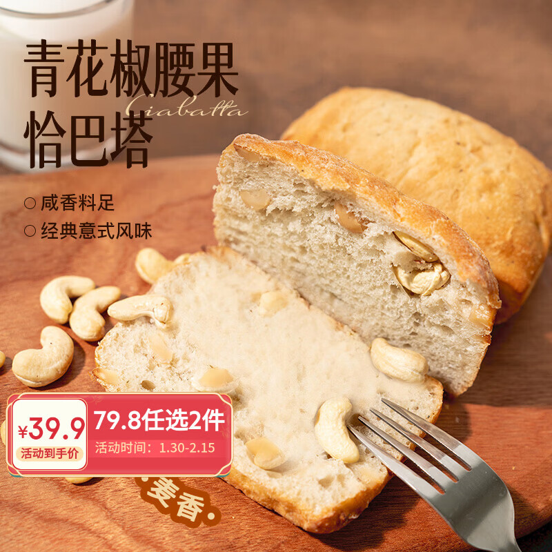 趣尝鲜青花椒腰果恰巴塔 480g(6个)冷冻面包懒人早餐全麦吐司三明治
