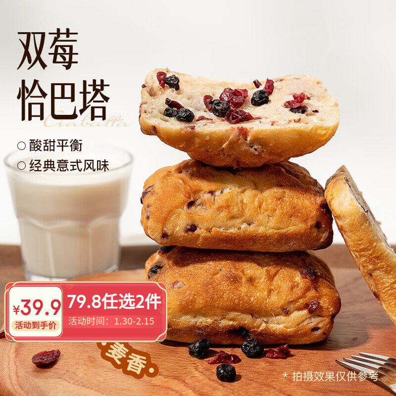 趣尝鲜双莓恰巴塔面包480g(6个)冷冻面包懒人早餐全麦吐司三明治欧包