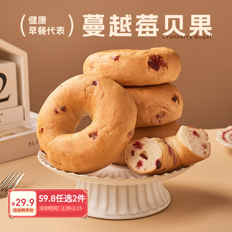 趣尝鲜蔓越莓贝果 760g(8个)冷冻面包懒人早餐全麦吐司三明治欧包碱水