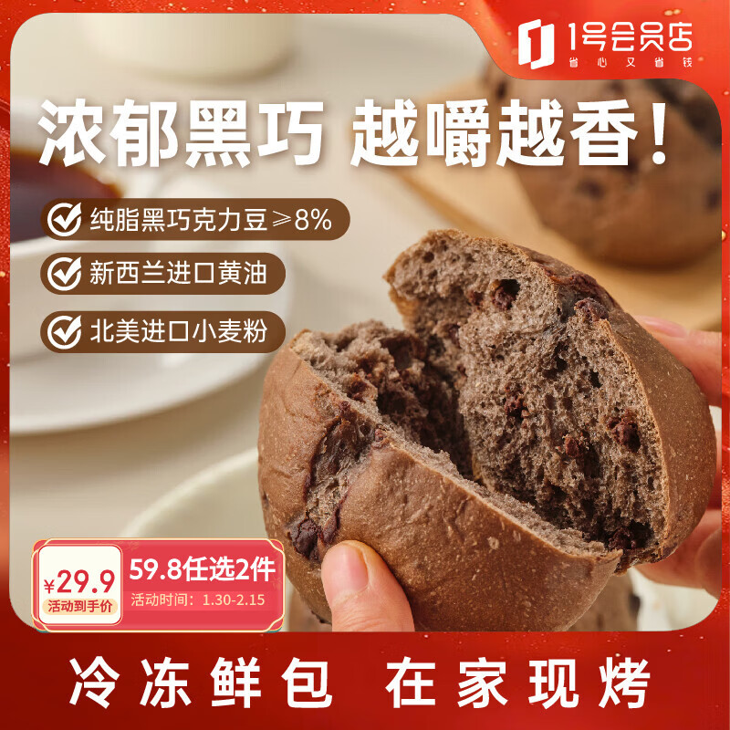 趣尝鲜巧克力软欧包360g(6个) 冷冻面包懒人早餐全麦吐司三明治欧包