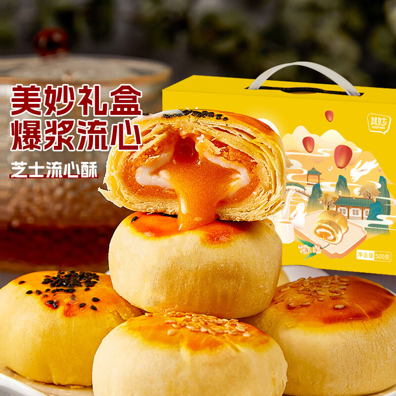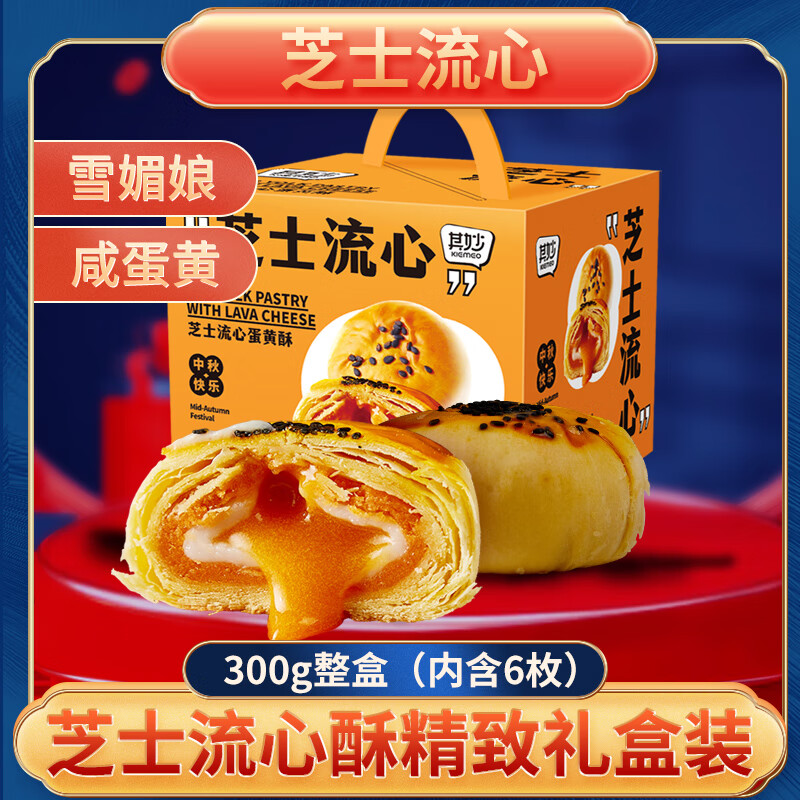 其妙蛋黄酥芋泥流心酥雪媚娘甜品早餐整箱小吃糕点点心小零食休闲食品 【礼盒款】芝士流心蛋黄酥300g