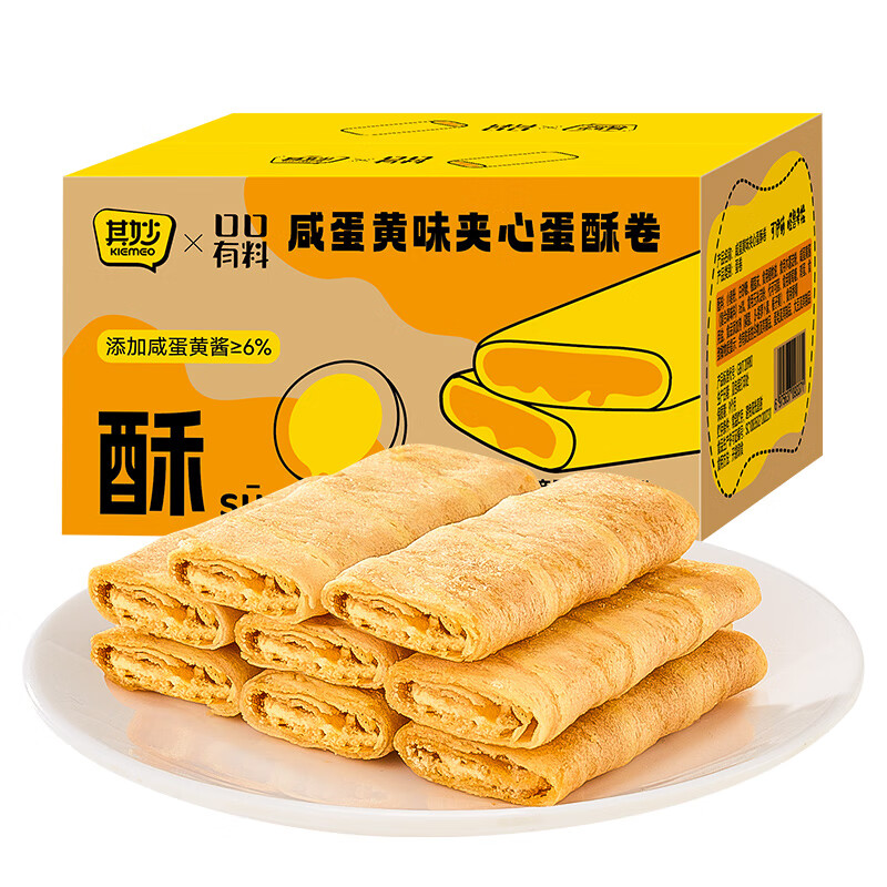 其妙咸蛋黄味蛋酥卷整箱夹心鸡蛋卷饼干卷心酥解馋小零食小吃休闲食品 [约20包]咸蛋黄味蛋酥卷160g