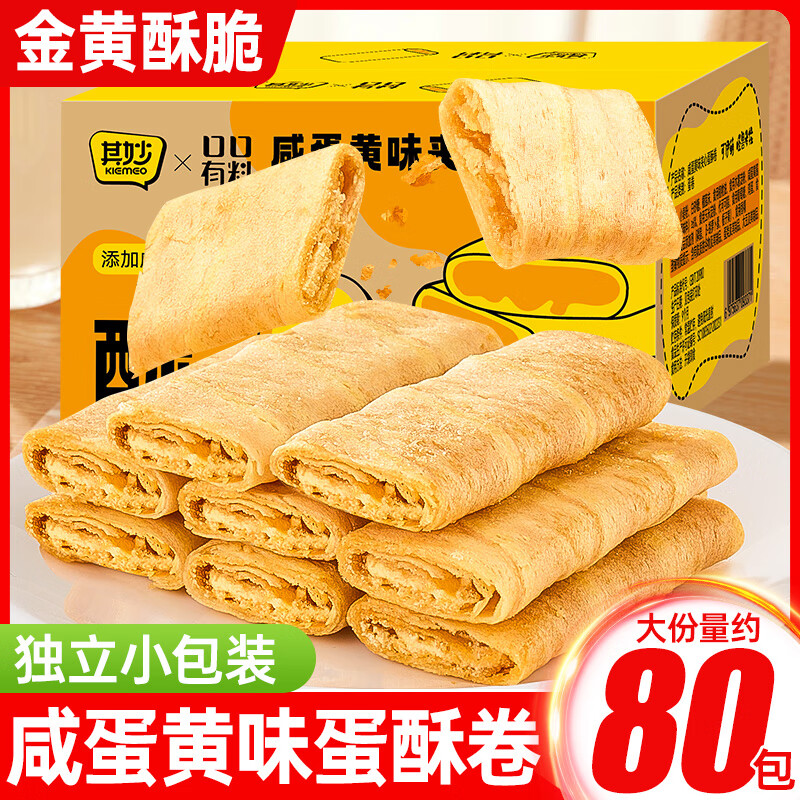 其妙咸蛋黄味蛋酥卷老式夹心蛋卷饼干整箱解馋小零食小吃休闲食品 咸蛋黄味蛋酥卷160g/箱 1箱(约20包)