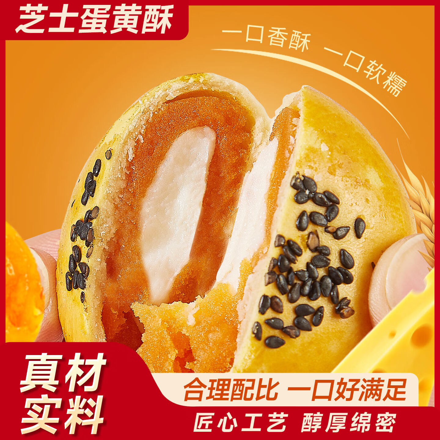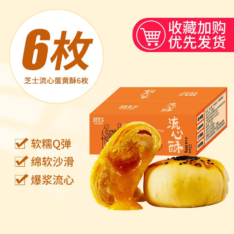 其妙芝士流心蛋黄酥雪媚娘面包糕点网红零食小吃甜点休闲食品包邮 必囤清单-芝士流心蛋黄酥6枚