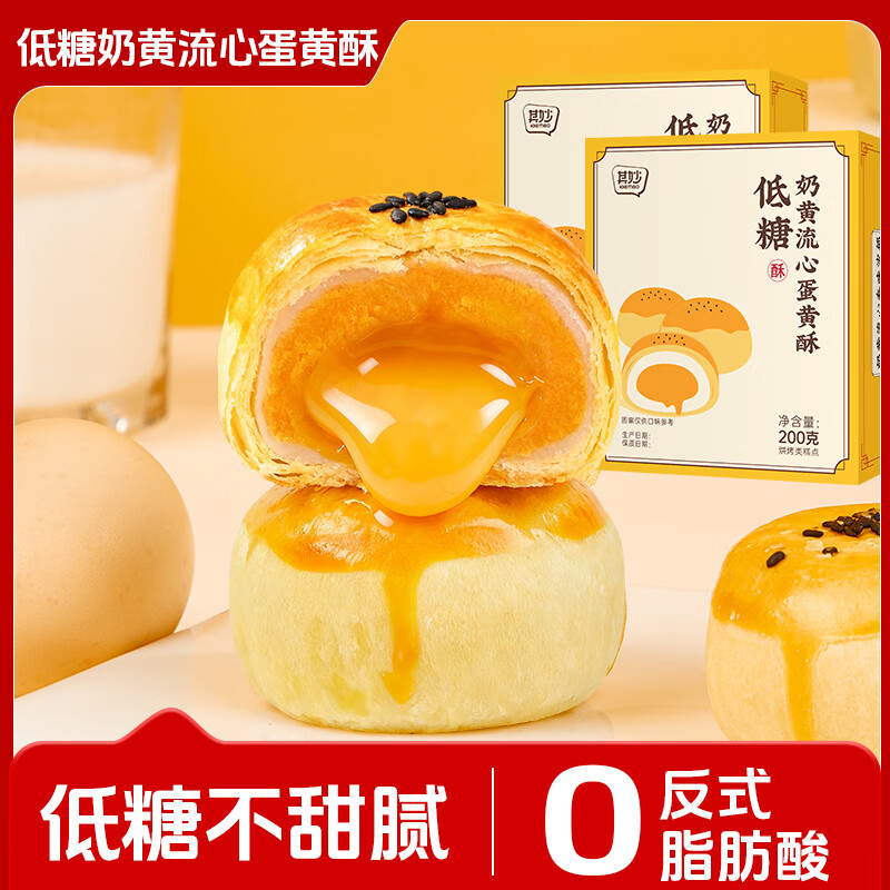 其妙低糖奶黄流心蛋黄酥雪媚娘糕点心营养早餐面包小零食小吃休闲食品 低糖奶黄流心蛋黄酥200g/盒