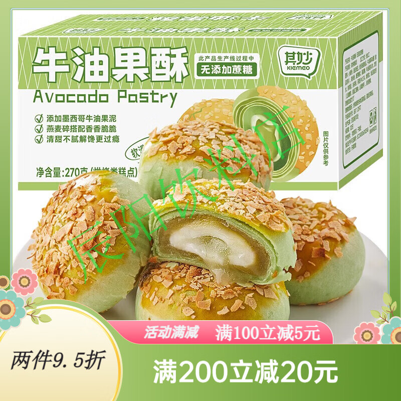 其妙牛油果酥网红流心蛋黄酥雪媚娘夹心特产小吃传统糕点代餐零食 牛油果酥 270g