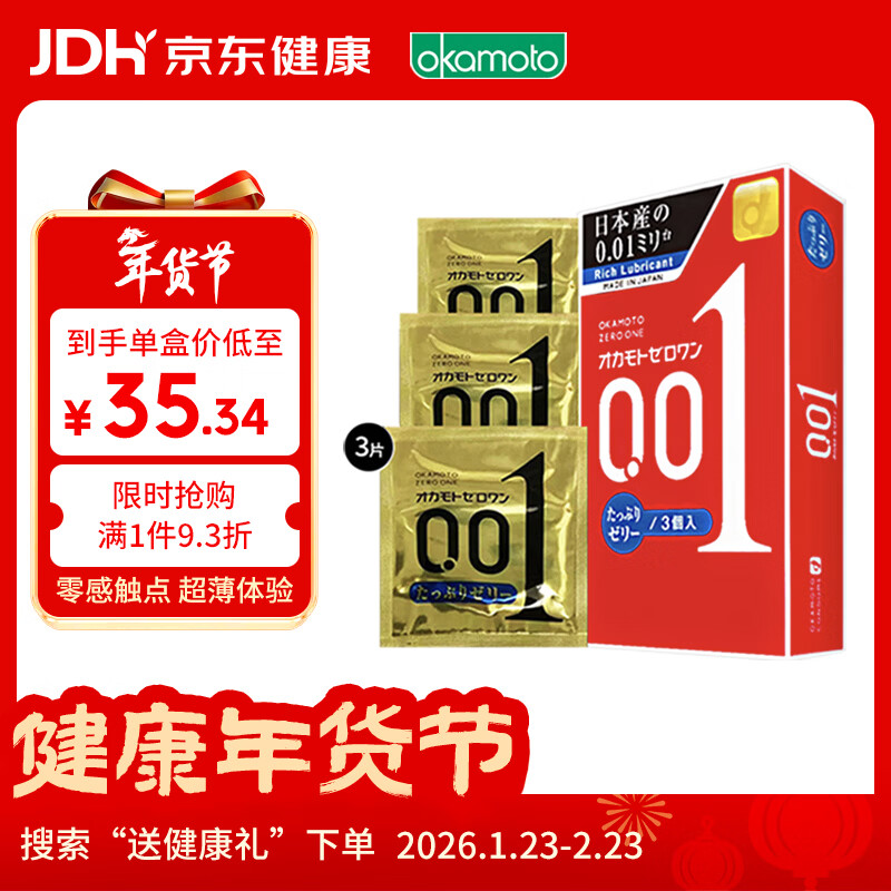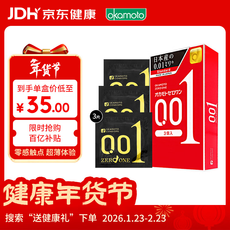 冈本001避孕套安全套 超薄标准3只装男女用套套 成人情趣计生用品进口