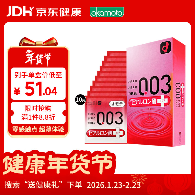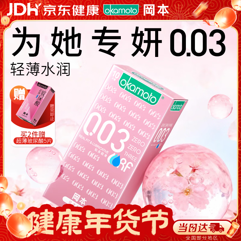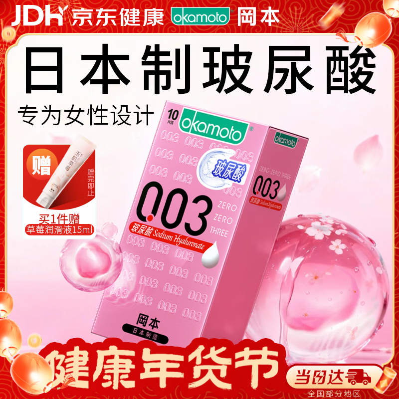 冈本003避孕套安全套玻尿酸超润滑10只装套套成人情趣计生用品进口