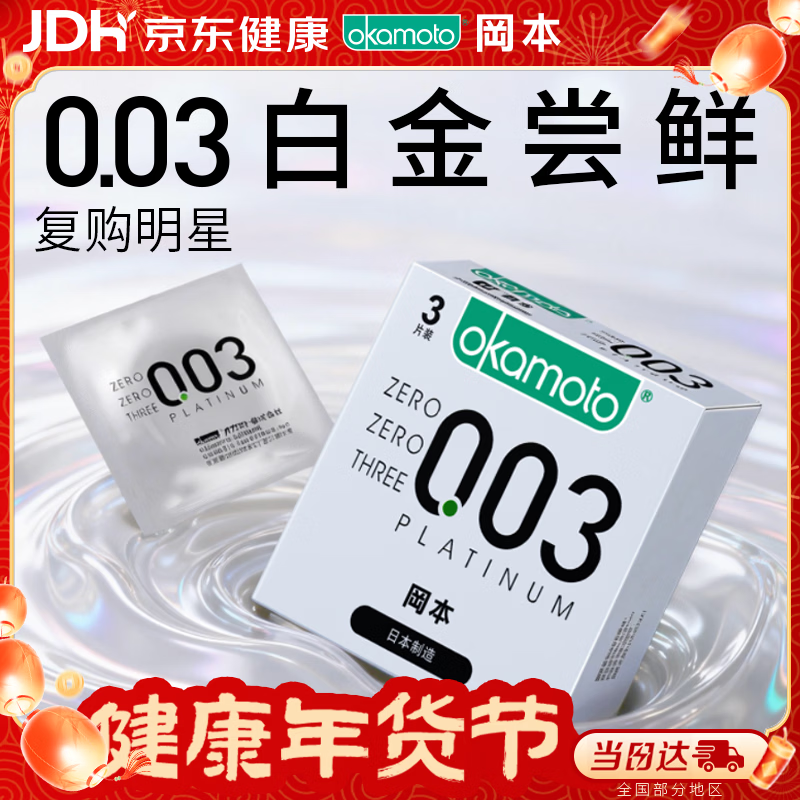 冈本(OKAMOTO)避孕套 进口003白金超薄3片 男女用润滑安全套套成人情趣计生用品