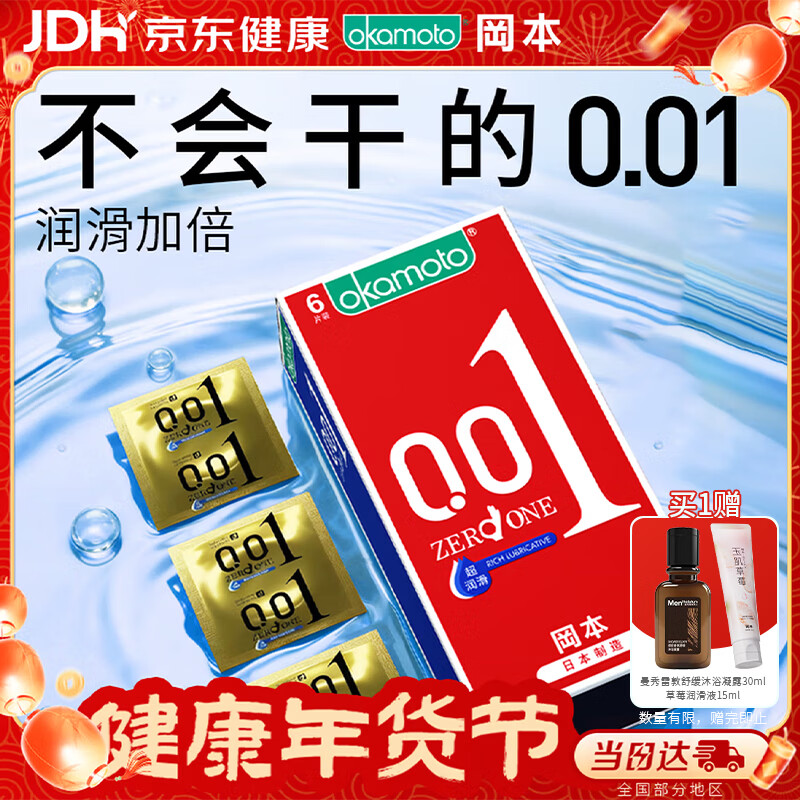 冈本(OKAMOTO)超薄避孕套 001超润滑6片 男女用成人情趣计生用品0.01mm安全套套