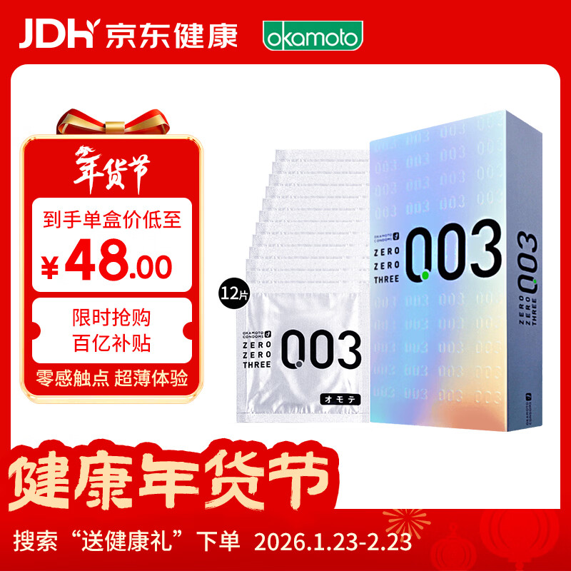 冈本003避孕套安全套白金贴合超薄12只 套套成人情趣计生用品日本进口