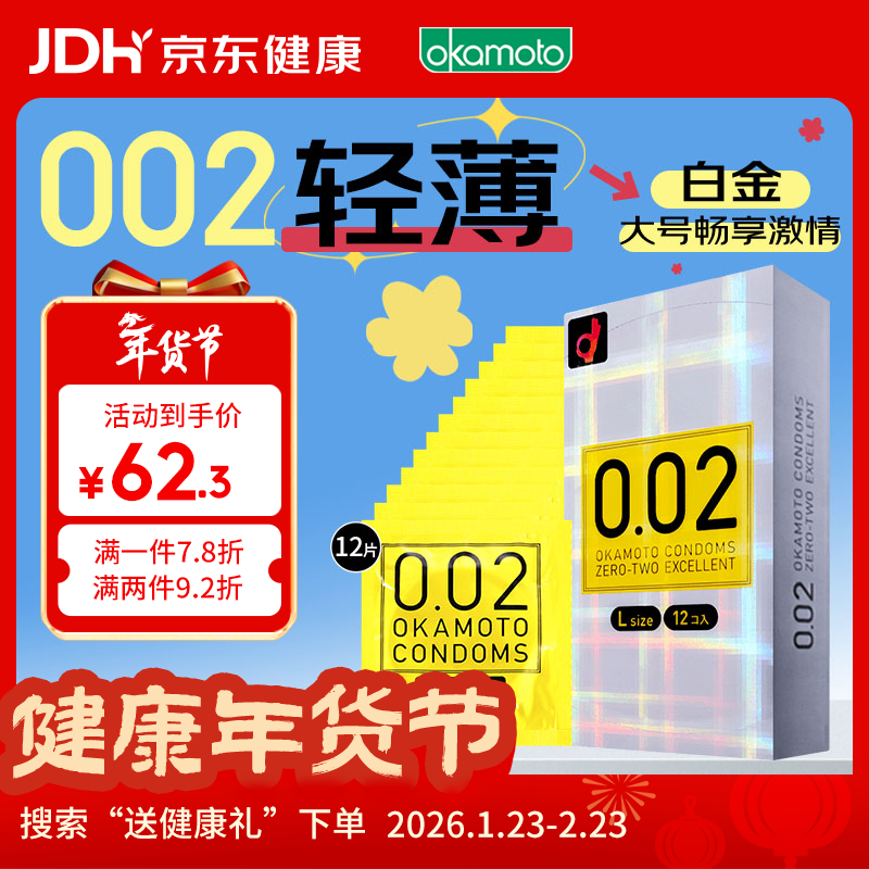 冈本 避孕套 安全套002超薄大号L码12只套套成人情趣计生用品日本进口