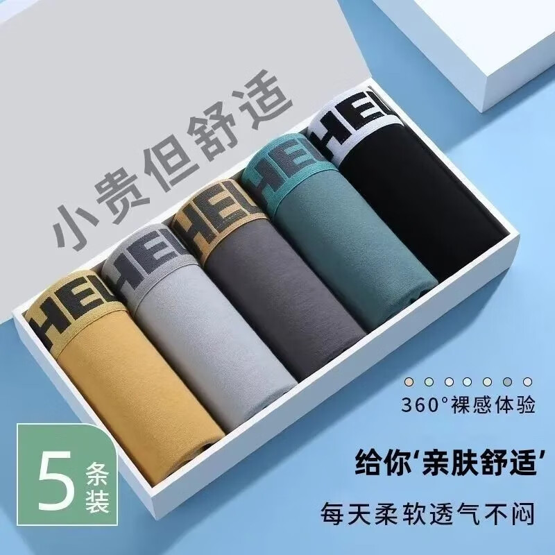 男士冰丝内裤夏季新款HELLO短裤衩舒适透气亲肤平角裤g 套餐 男士透气HELLO内裤 5条 4XL 【建议160-200斤】