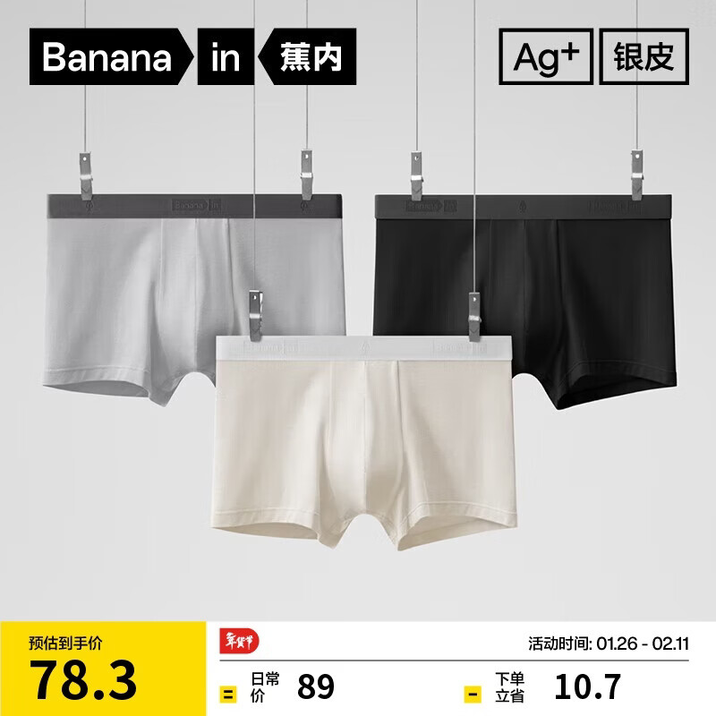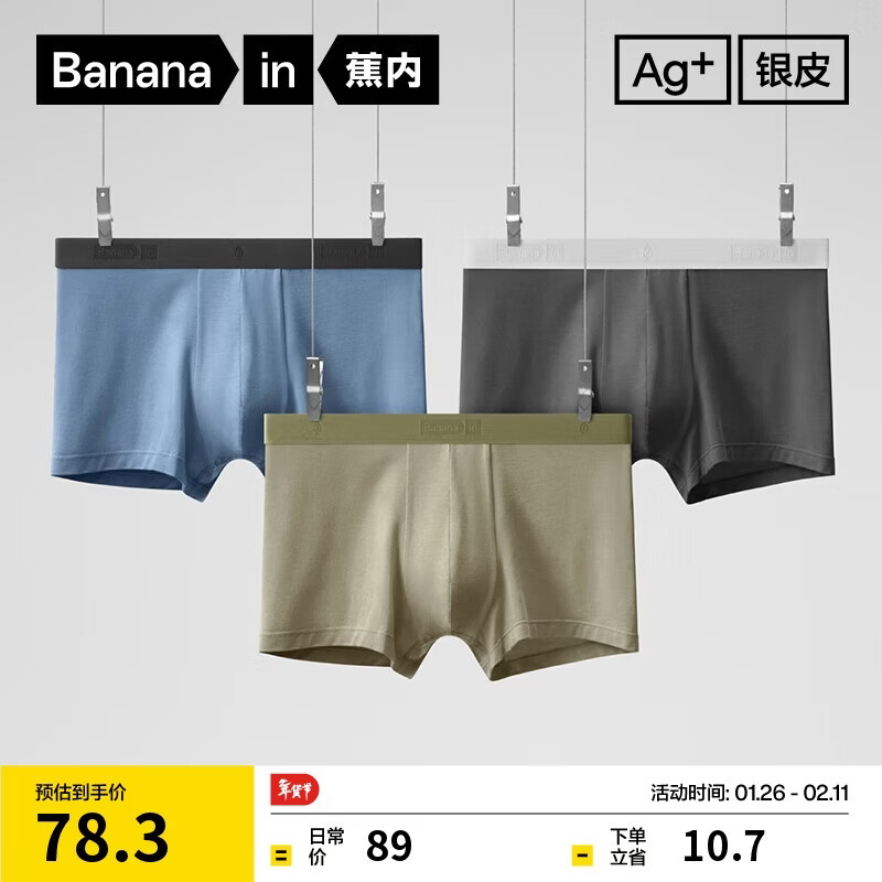 蕉内301P莫代尔男士内裤10A抗菌无痕平角裤棉裆冰丝透气情人节礼物3件