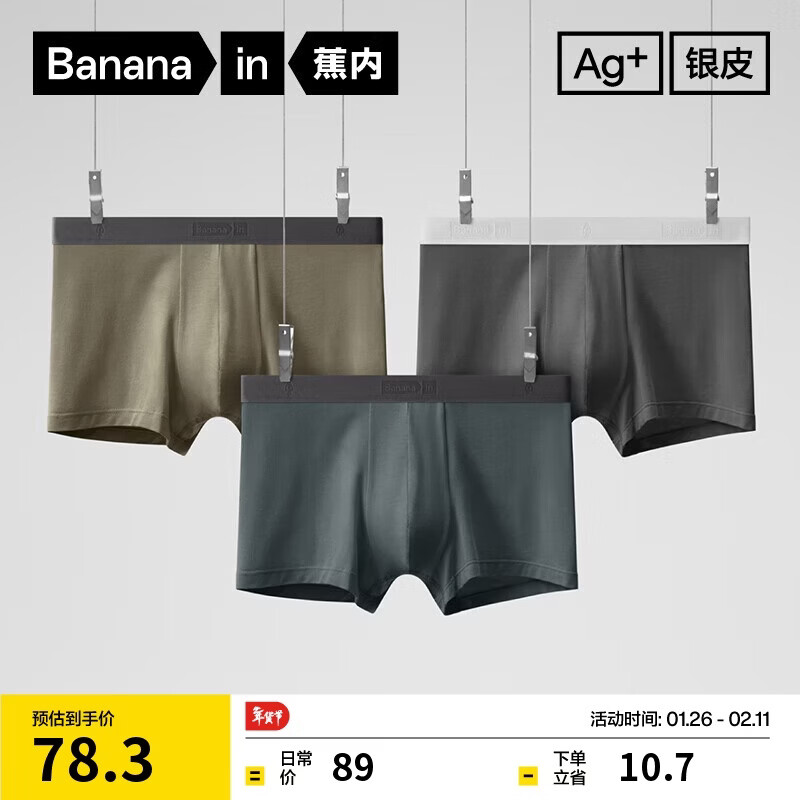 蕉下(beneunder)莫代尔男士内裤3条装无痕底裆抗菌冰丝平角裤透气运动四角裤 月凝灰+漫暮黑+灰榄绿 3条 M