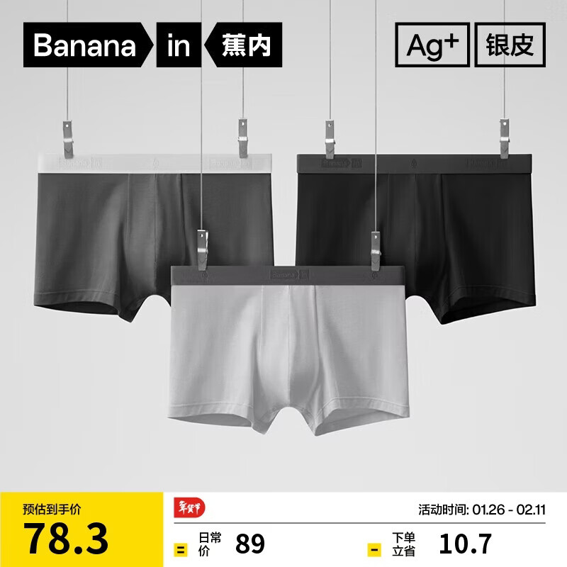 蕉下(beneunder)莫代尔男士内裤3条装无痕底裆抗菌冰丝平角裤透气运动四角裤 月凝灰+漫暮黑+薄烟紫 3条 M