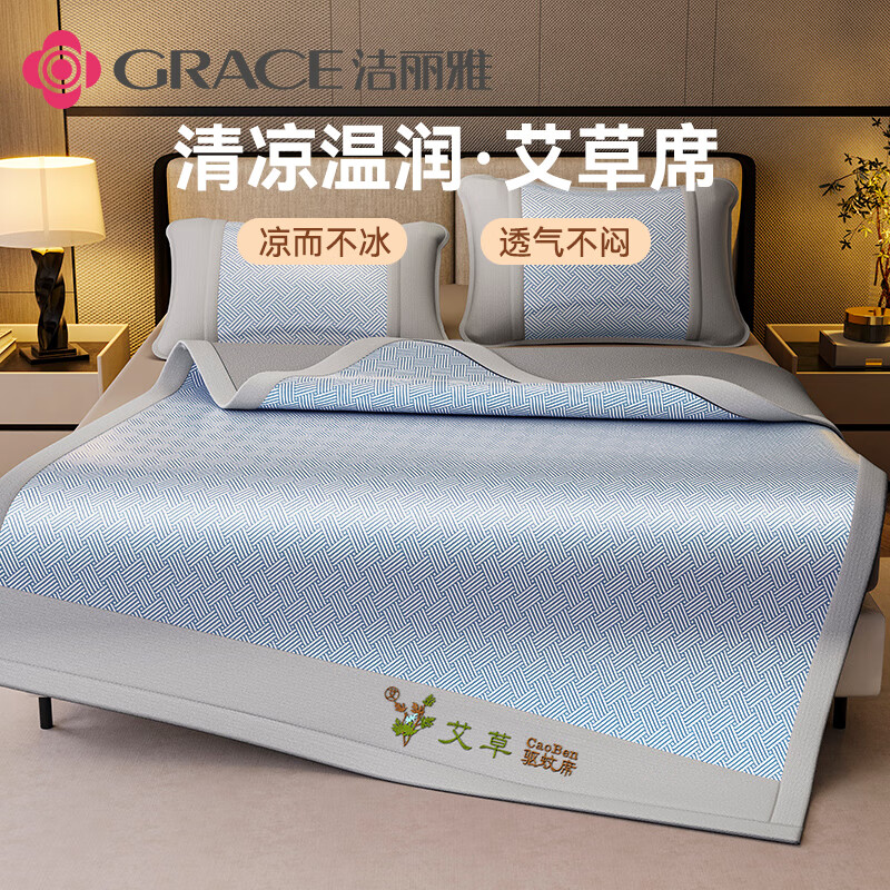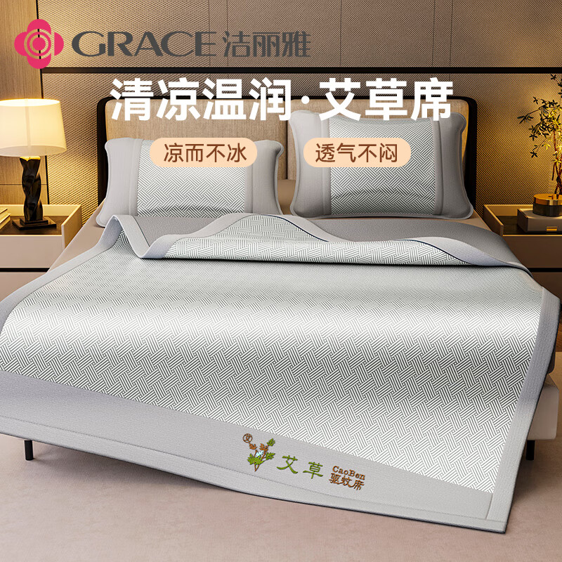 洁丽雅(Grace)冰丝凉席 双人单席150*200cm饼干花灰【可水洗 可折叠】