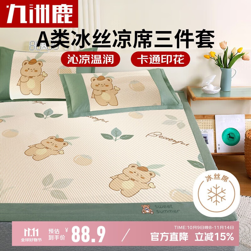 九洲鹿抗菌凉感冰丝席夏凉席1.8*2米双人空调席冰丝凉席可折叠席子