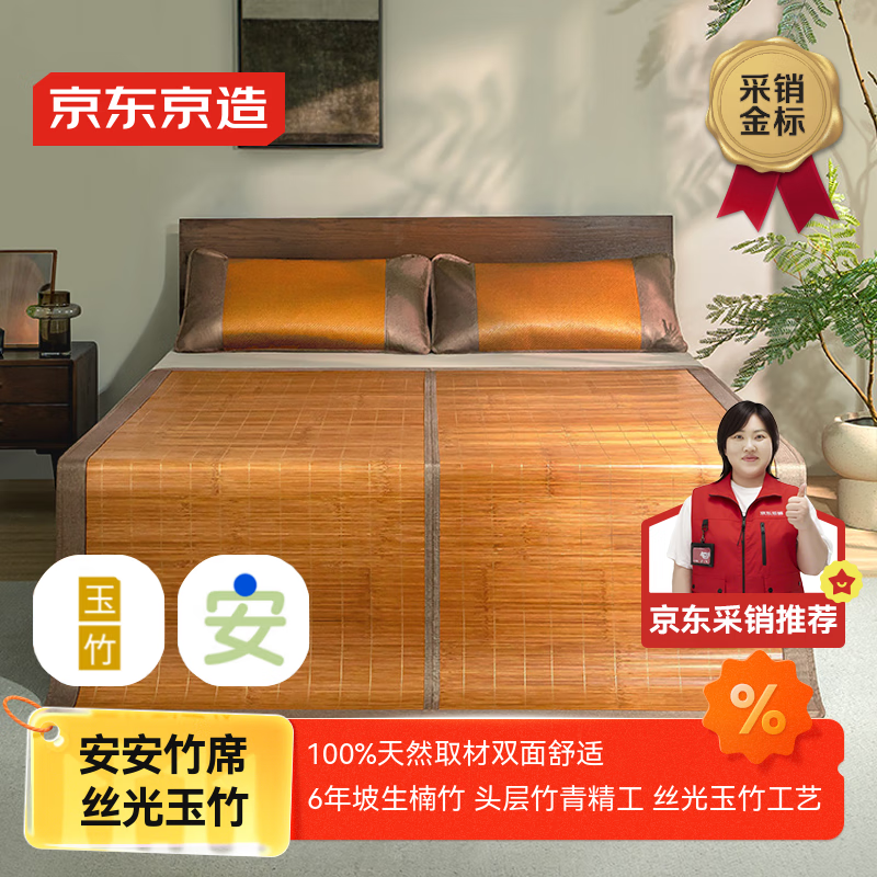 京东京造安安竹席金标款 100%头层竹青丝光玉竹工艺冰丝凉席子单席1.8米床