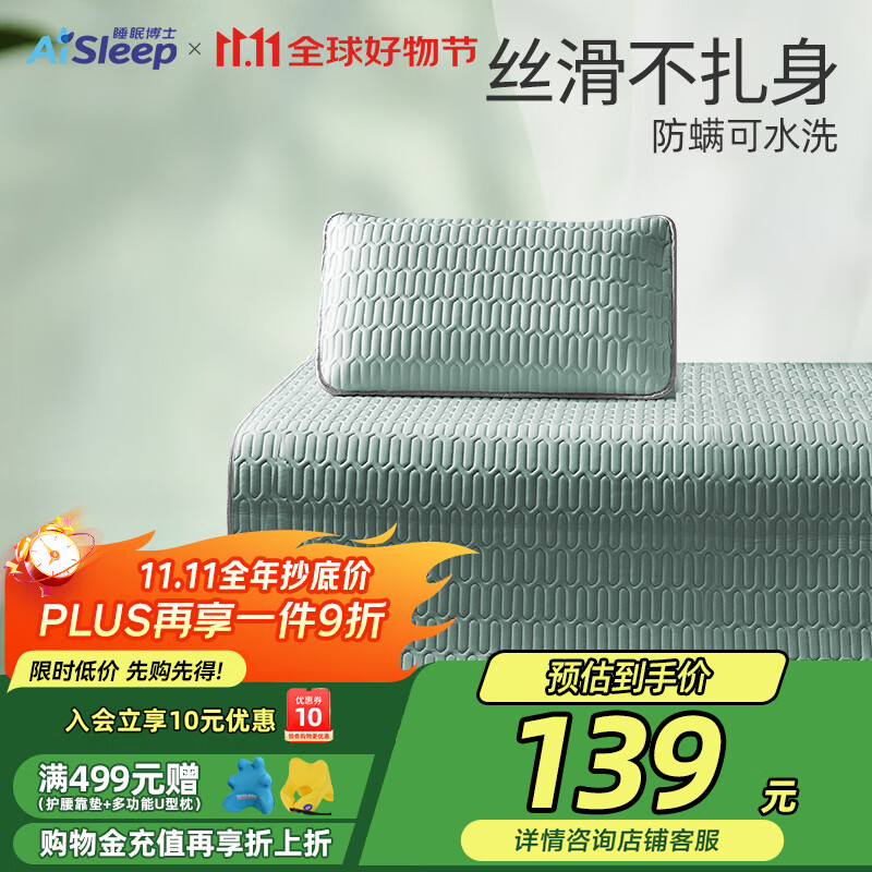 睡眠博士(AiSleep)泰国乳胶凉席两件套单人冰丝席儿童学生宿舍席子防螨可机洗夏凉席