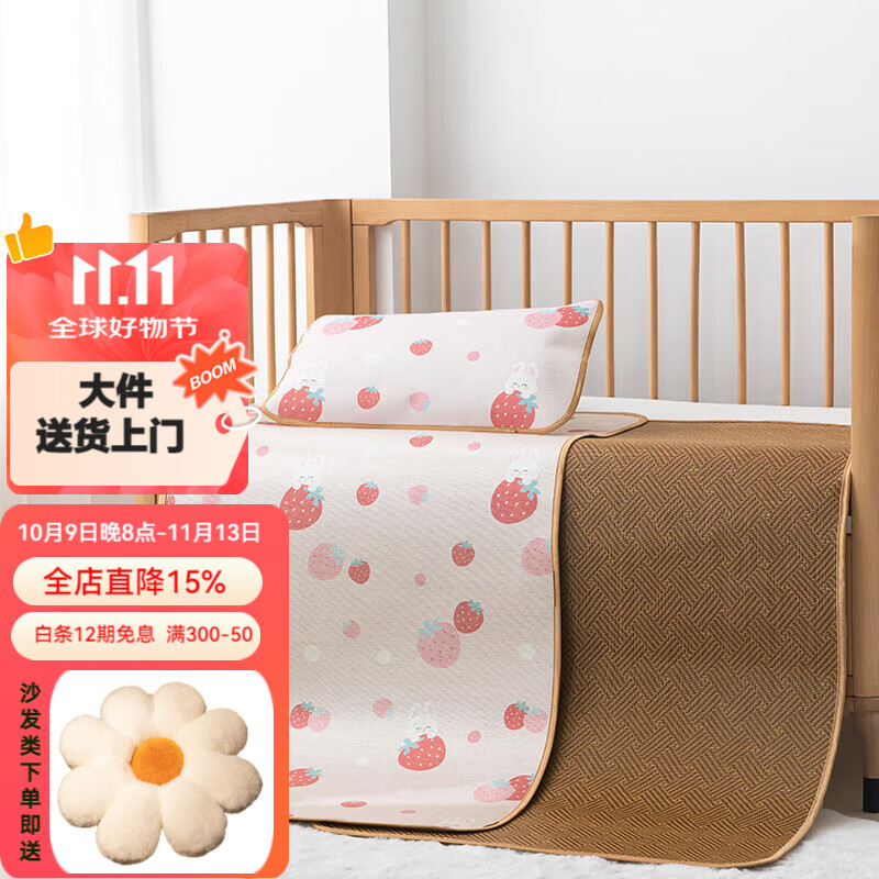 OUOETY2025新款婴儿凉席宝宝小床冰丝席幼儿园午睡垫子夏季双面儿童藤席 双面凉席 藤+冰丝 草莓兔 单件 60cm*150cm