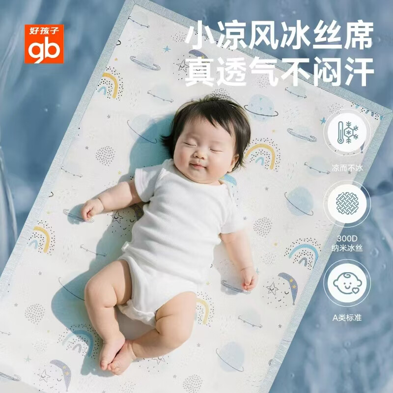 好孩子(gb)婴儿凉席宝宝床席幼儿园床凉席抑菌透气吸汗冰丝床凉席 可水洗 蓝