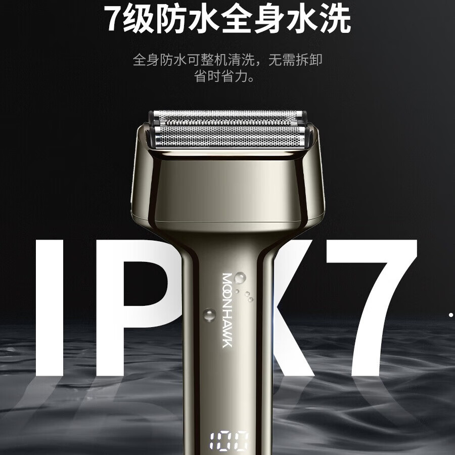 月鹰(MOONHAWK)往复式剃须刀便携款电动剃须刀IPX7级防水(一日达) 银色 七级防水 旅行装
