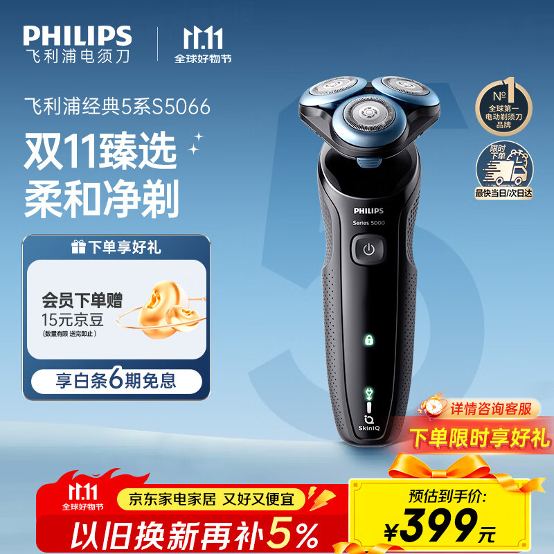 飞利浦(PHILIPS)电动剃须刀经典5系 闪电系列智能刮胡刀 送老公送男友 父亲生日礼物