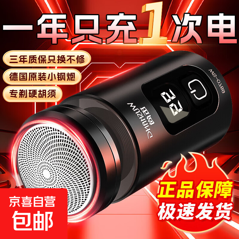 德国进口小钢炮平替剃须刀电动剃须刀刮胡刀充电式电动便携式须刨刀男士智能电显送男友送老公礼物 36页刀头9999万转待机999天