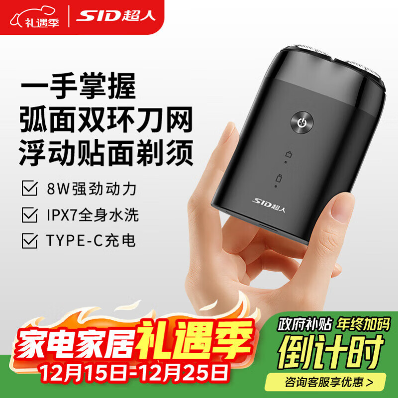超人(SID)电动剃须刀 小型迷你便携式刮胡刀 旋转式剃须刀全身水洗 送男友送老公生日节日礼物 HS7279 重磅新品