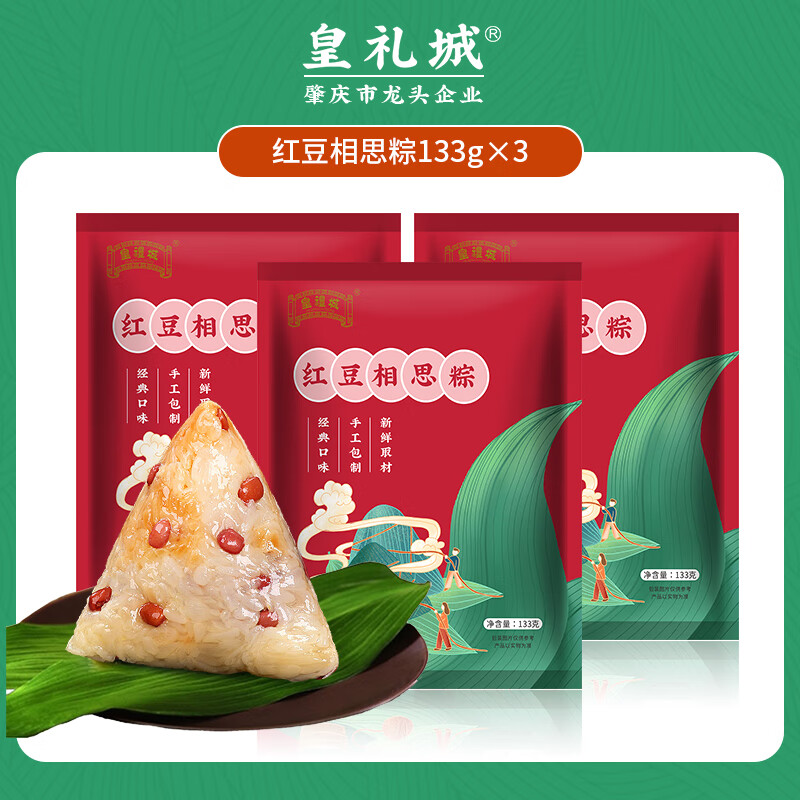 北京稻香村第二件半价广式五香咸肉粽手工粽子真空包装蛋黄猪肉代餐粽子 红豆相思粽133g*3只