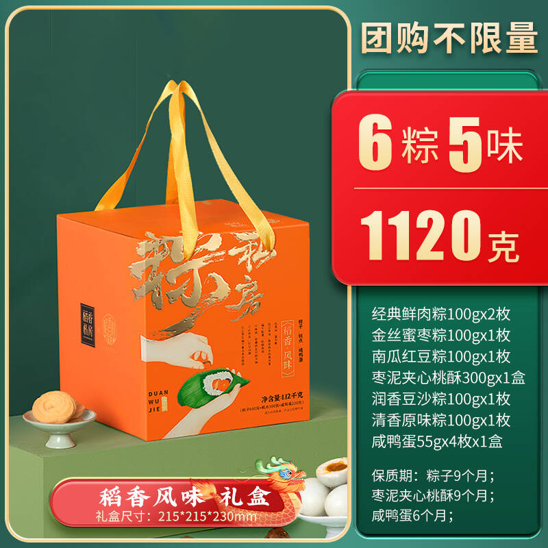 北京稻香村糕点稻香京皇粽子端午礼盒装批货稻香鸿福端午粽子礼盒批发 稻香鸿福6粽2糕 920克