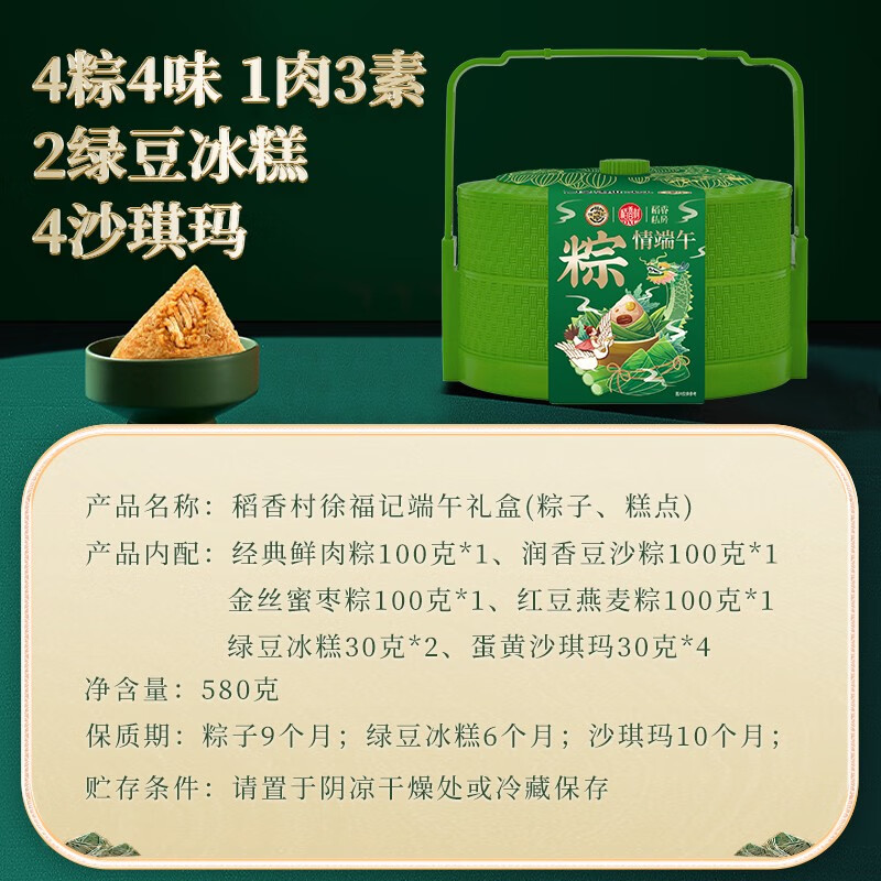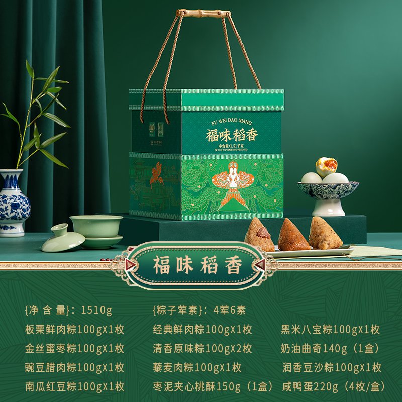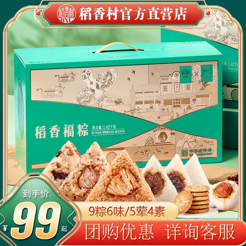 北京稻香村粽子礼盒稻香福粽糕点粽子肉粽甜粽咸鸭蛋端午礼盒团购优惠 稻香福粽1420g9粽6味+咸鸭蛋+桃
