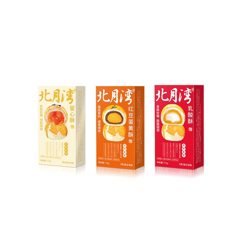 北月湾 蛋黄酥2枚装留心酥乳酸酥传统糕点办公室零食甜点小吃年货送礼 红豆、留心、乳酸各1盒共330g