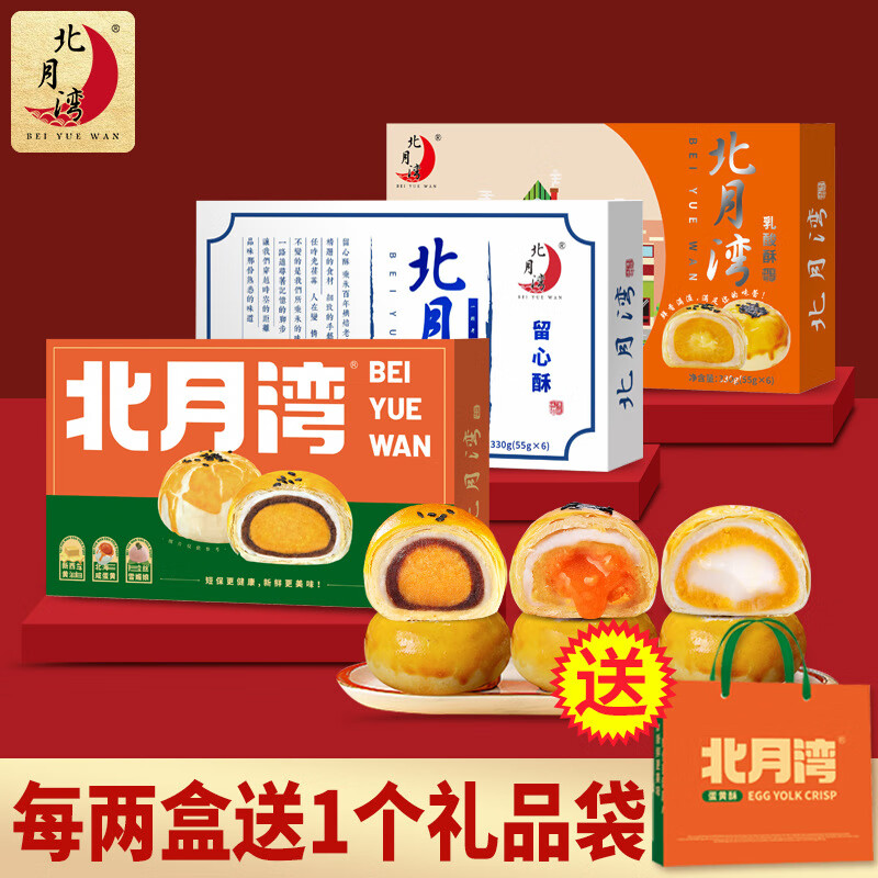 北月湾红豆雪媚娘海鸭蛋蛋黄酥330克2盒礼袋装零食礼盒年货送礼 北月湾蛋黄酥礼袋装