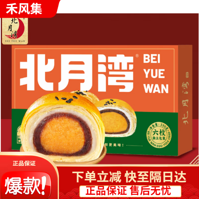 北月湾 雪媚娘蛋黄酥饼干传统糕点小吃礼盒点心网红办公室零食年货送礼 北月湾红豆蛋黄酥6枚330g
