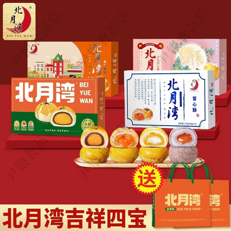 北月湾蛋黄酥留心酥芋头酥4口味组合解馋零食中秋送礼盒月饼批发 吉祥四宝共24枚送2个礼品袋