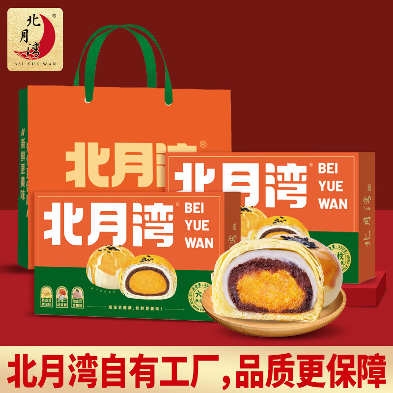 北月湾红豆味雪媚娘咸鸭蛋黄酥节日送礼办公室零食小吃礼盒6枚 北月湾红豆蛋黄酥