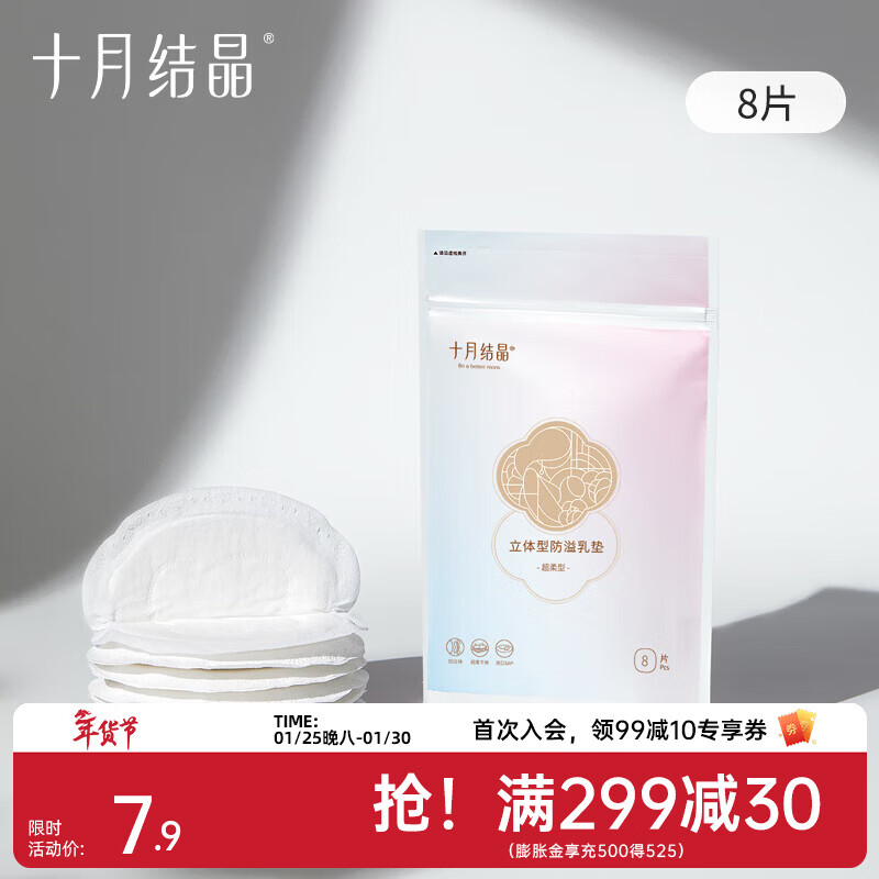 十月结晶防溢乳垫超薄一次性溢乳垫哺乳期防漏奶垫乳贴 8片装 【试用】